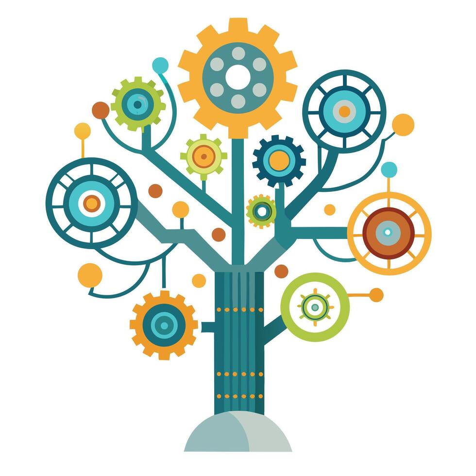 Botanical AI-Powered Robot Tree with Green Leaves and Trunk in a Natural Setting Pro Vector