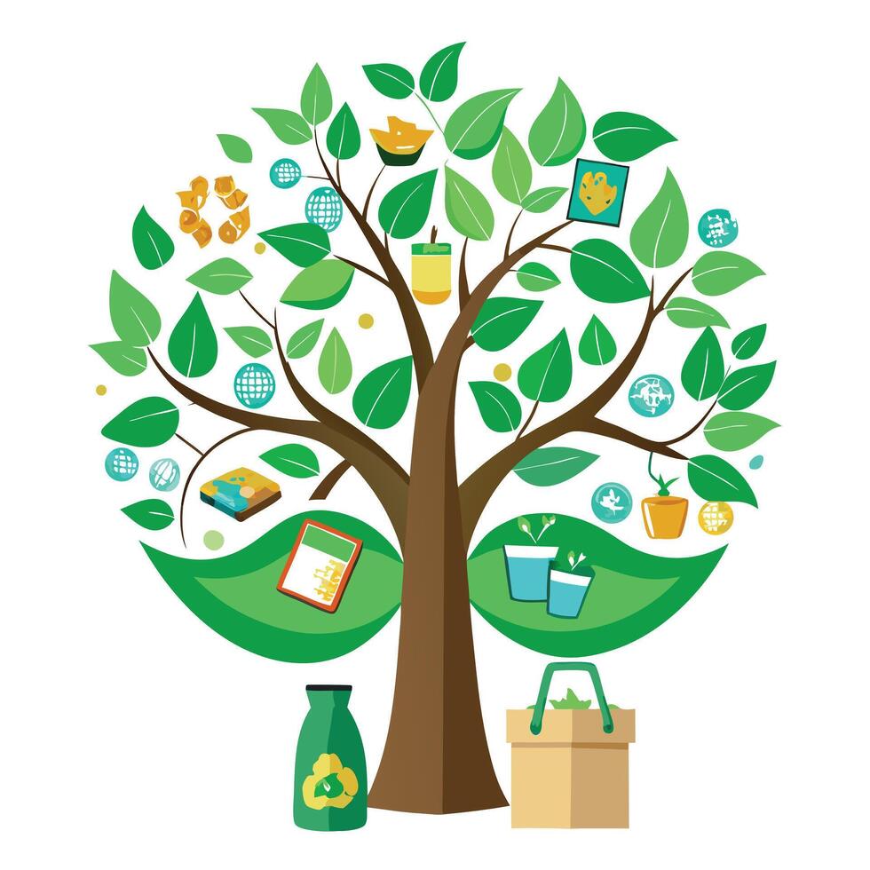 Intricate Biodegradable Packaging Tree with Delicate Leaves and Trunk in a Fantasy Setting Pro Vector