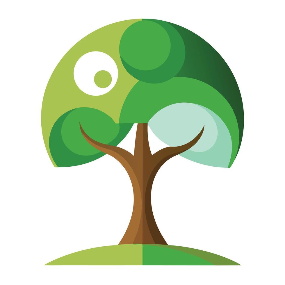 Flat Tree with a Stylized Yin Yang Canopy in a Whimsical Setting Pro Vector