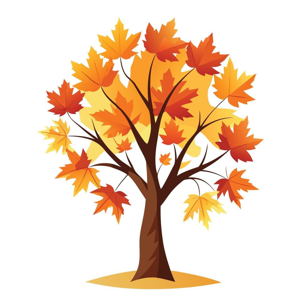 Botanical Flat Tree with Green Autumn Maple Leaf Gradient in a Natural Setting Pro Vector