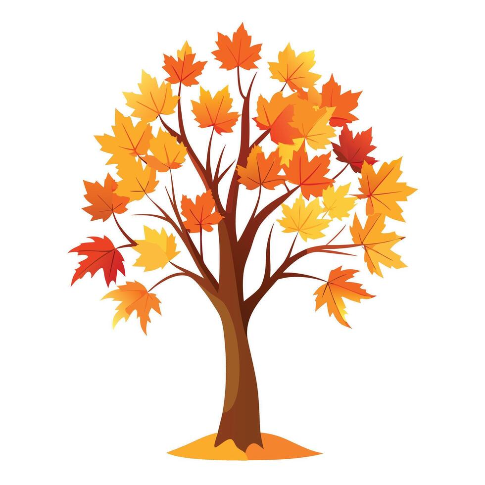 Intricate Flat Tree with Delicate Autumn Maple Leaf Gradient in a Fantasy Setting Pro Vector
