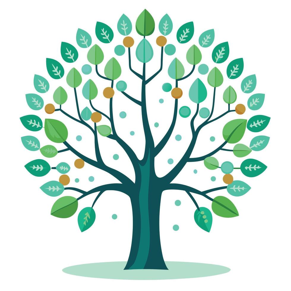 Botanical Flat Tree with Green Binary Code Leaves in a Natural Setting Pro Vector