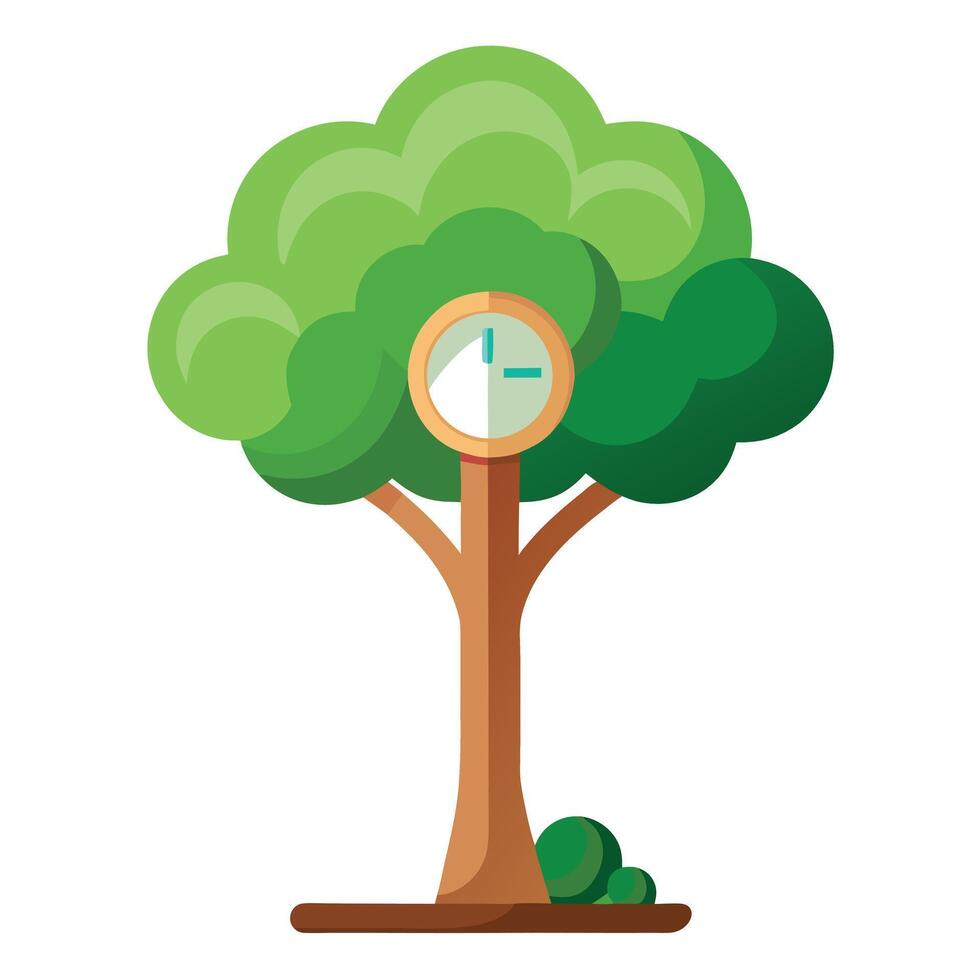 Unique Tree with Clock Face Embedded in Canopy in a Whimsical Design Pro Vector