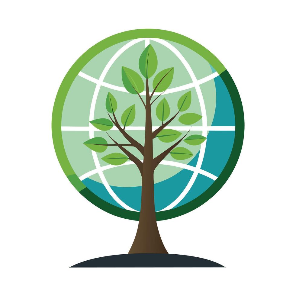 Flat Tree Design with Embedded Earth Globe in Canopy Generate Pro Vector