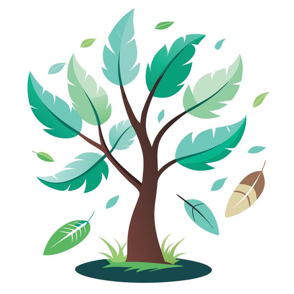 Generate Floating Feather Leaves for Flat Tree Style and Isolated on a white Background Pro Vector