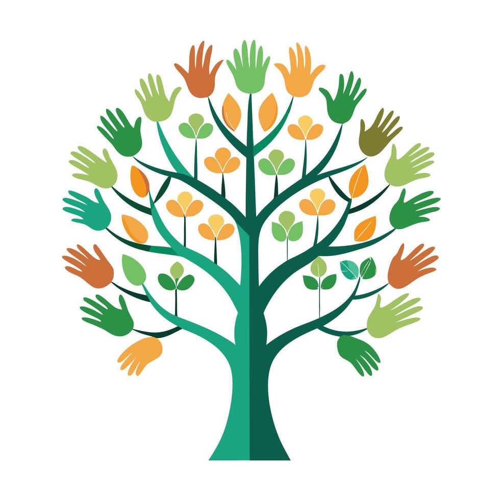Artistic tree design with hands forming branches that symbolize unity and collaborative effort Pro Vector