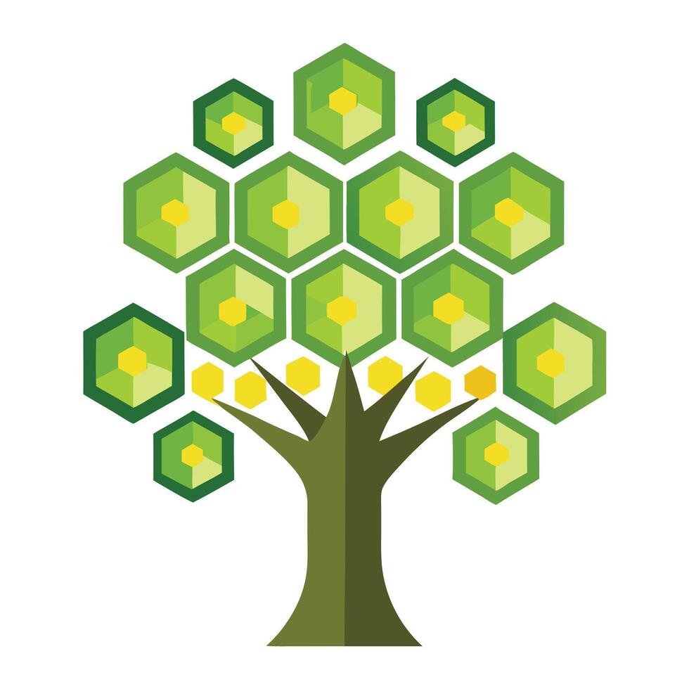 Modern tree artwork featuring leaves with a sophisticated and repeating honeycomb pattern Pro Vector