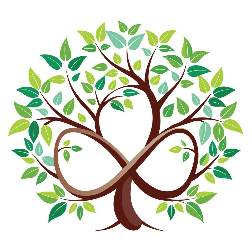 Modern tree design with branches and leaves shaped as infinity loops symbolizing unending cycles Pro Vector
