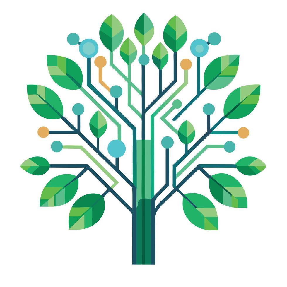 Digital age tree artwork featuring intricate microchip patterns in the form of leaves Pro Vector