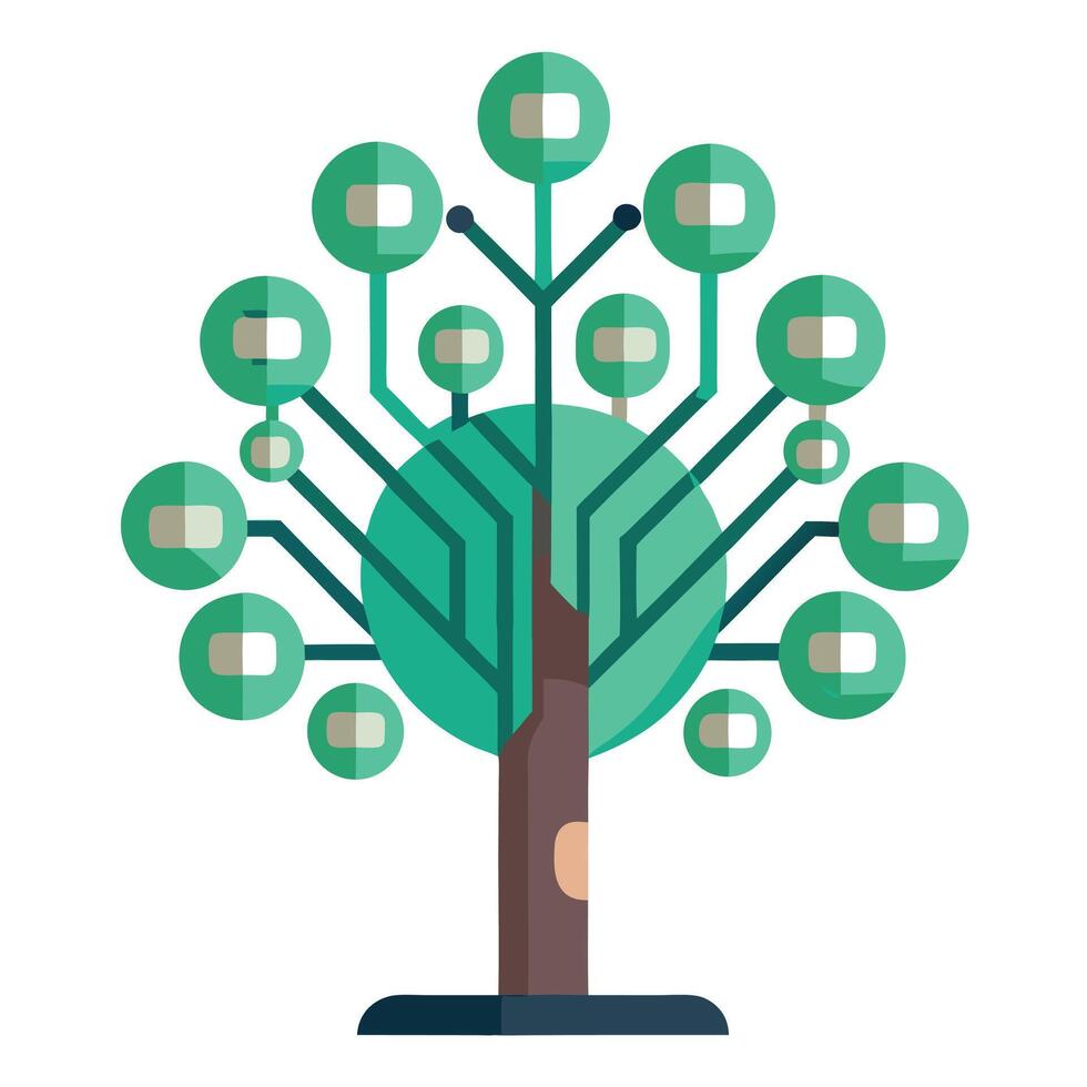High tech tree graphic showcasing advanced microelectronic components as leaves Pro Vector