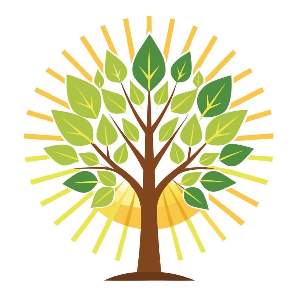 Unique tree illustration with stylized leaves displaying an intricate sunburst pattern adding a radiant touch Pro Vector
