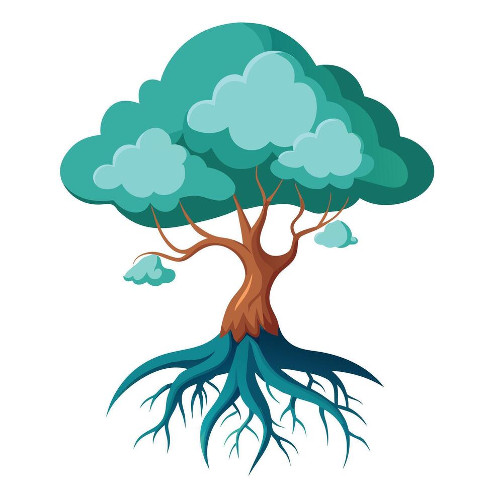 Artistic depiction of a tree with its base dissolving into soft clouds Pro Vector