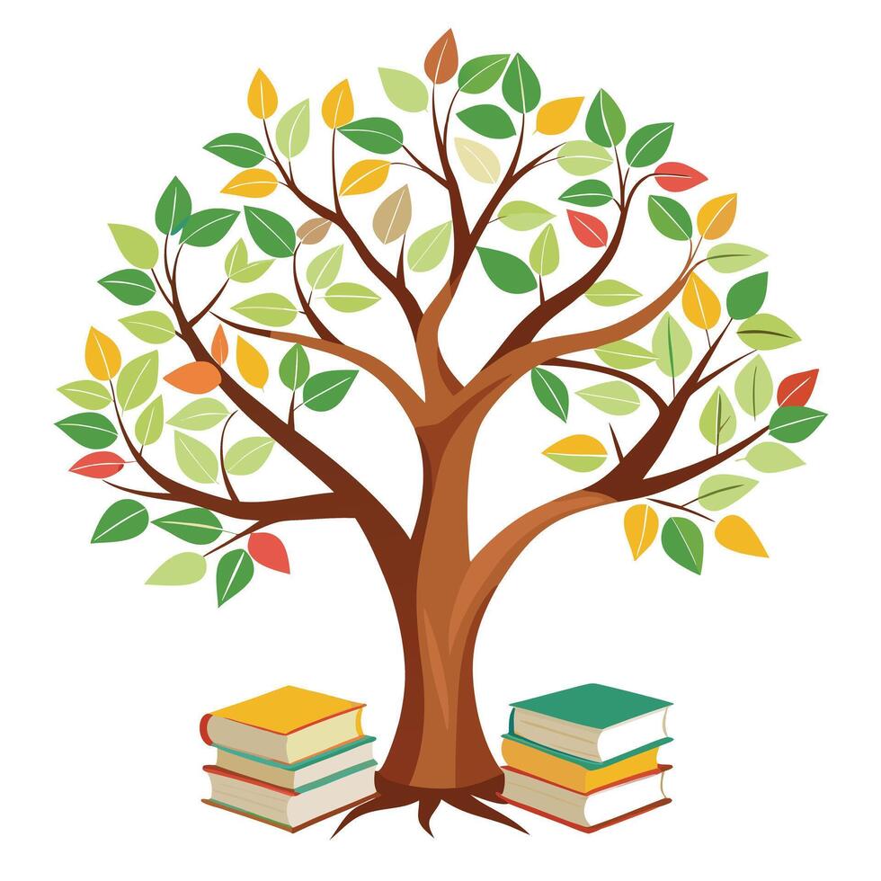 Artistic depiction of a tree with open books drifting around its branches Pro Vector
