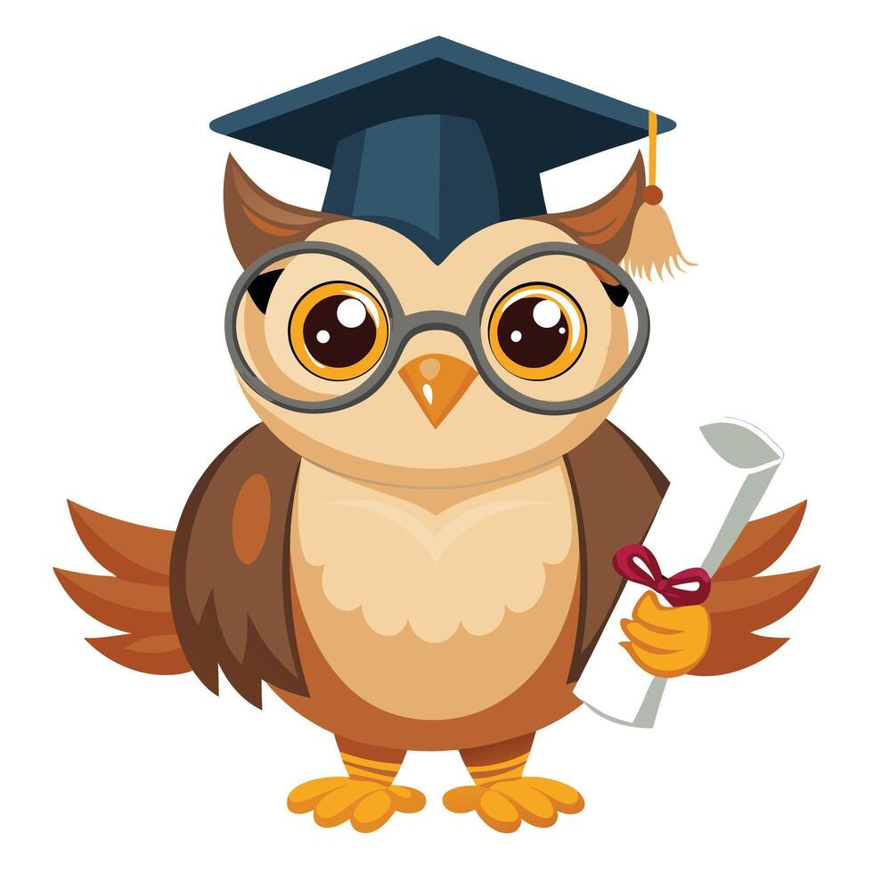 Amusing funny owl with a grad cap on and a rolled-up diploma in its talons Pro Vector