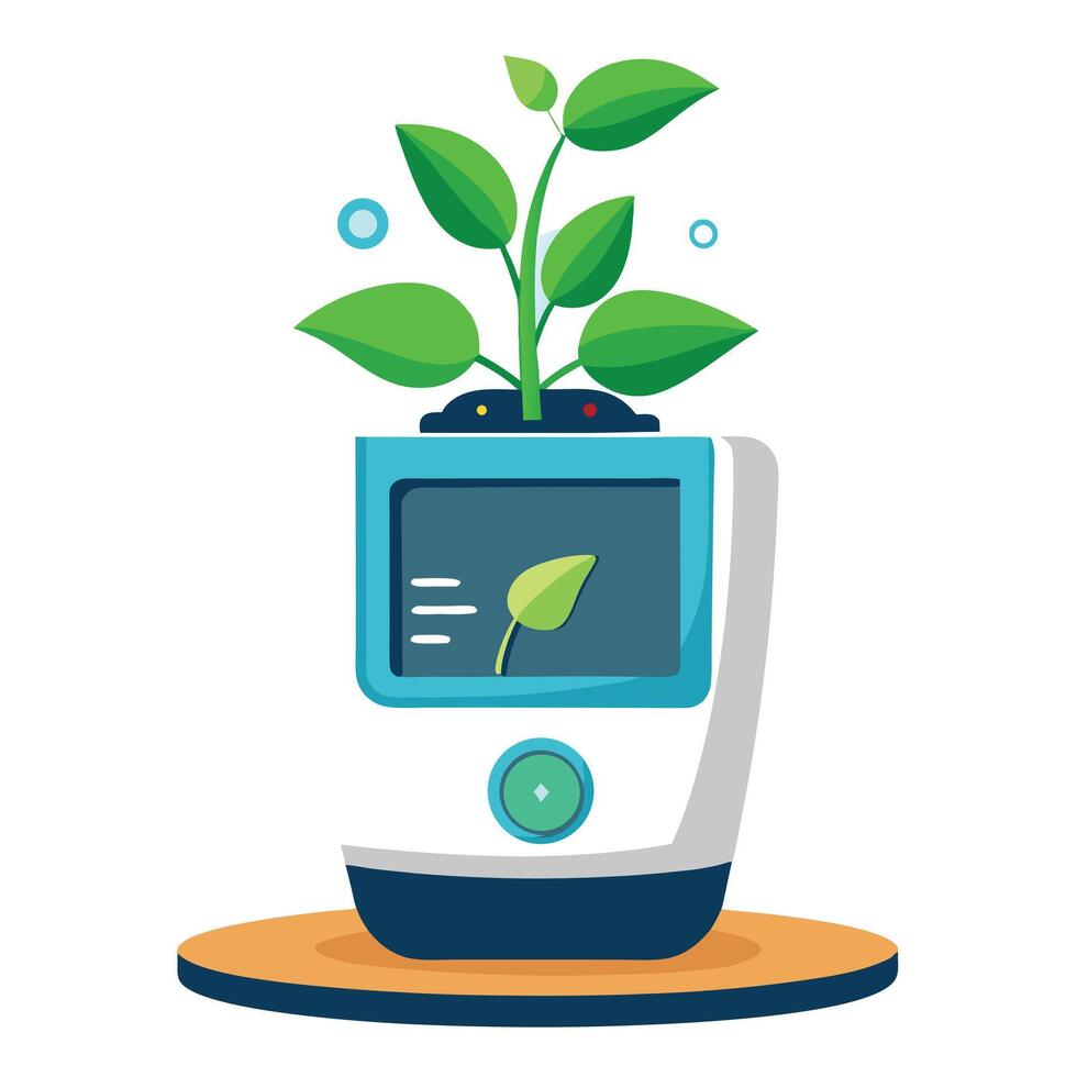 Digital Display AI Controlled Planter Showing Plant Status Pro Vector