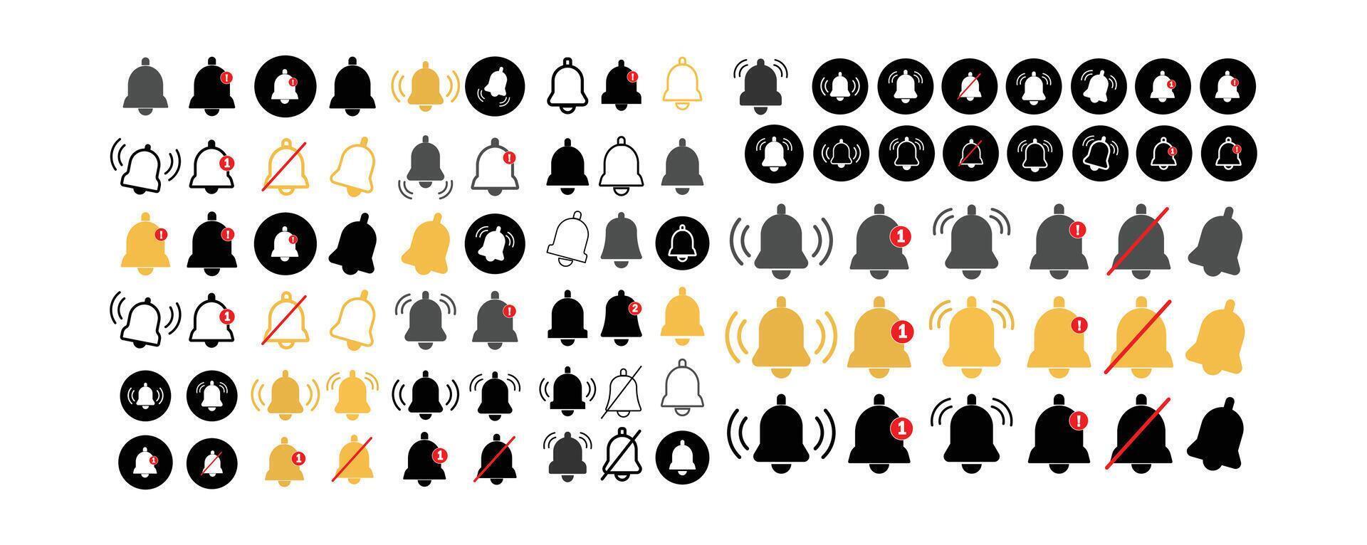 bell icon collections in different style. ringing bell icon collections on white background. New message notifications icons. Pro Vector