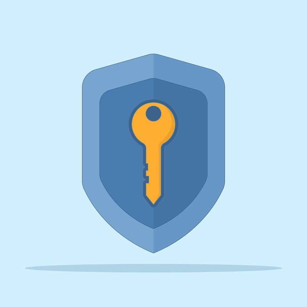security and protection encryption system concept. access key. password, privacy, authentication, verification. shield with golden key. symbol or icon. minimalist design illustration. Pro Vector