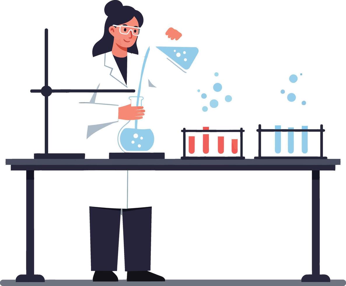 Scientist conducting experiments in a laboratory using minimal flat art Pro Vector