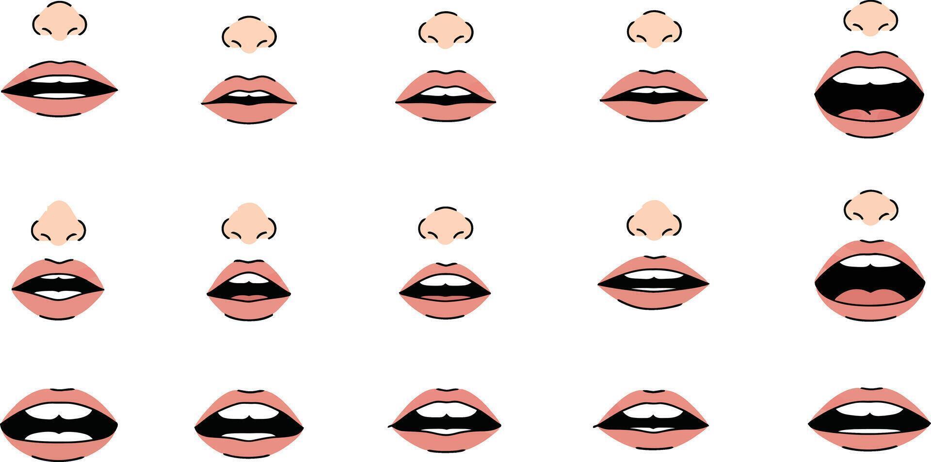 Sequence of lips showing various expressions and mouth movements in a playful style Pro Vector