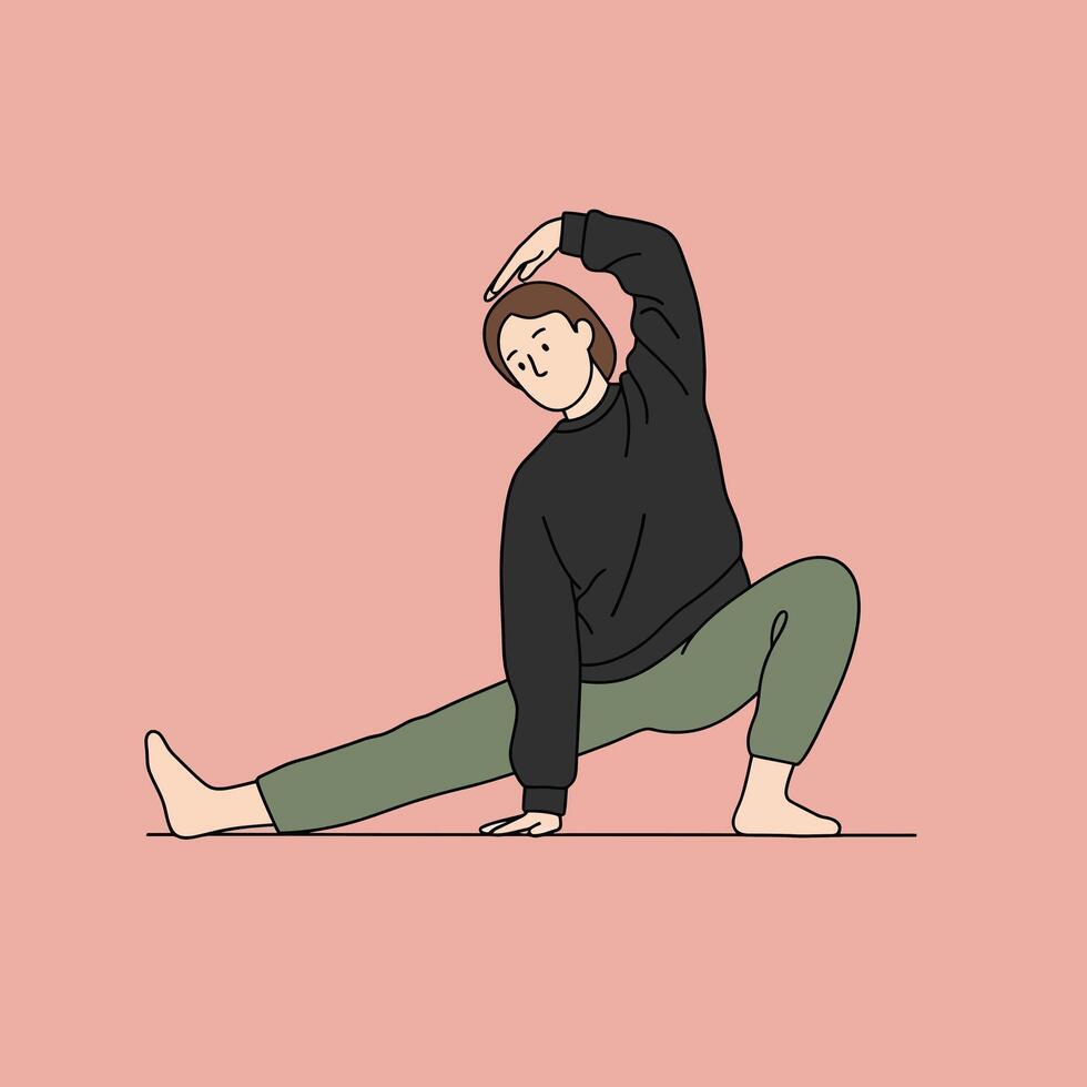 Dynamic yoga pose transition in minimal flat design art Pro Vector