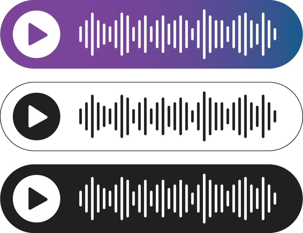 Collection of Play Button with Music Rhythm Sound Wave on Rounded Rectangle Pro Vector