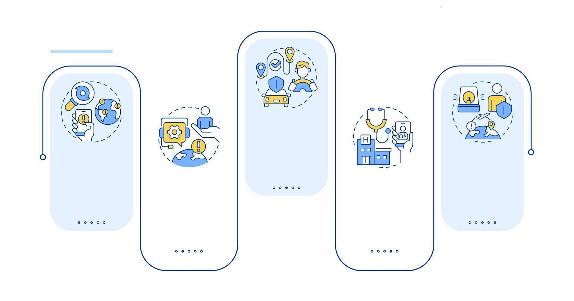 Travel risk management services rectangle infographic . Tourist protection features. Data visualization with 5 steps. Editable rectangular options chart Pro Vector