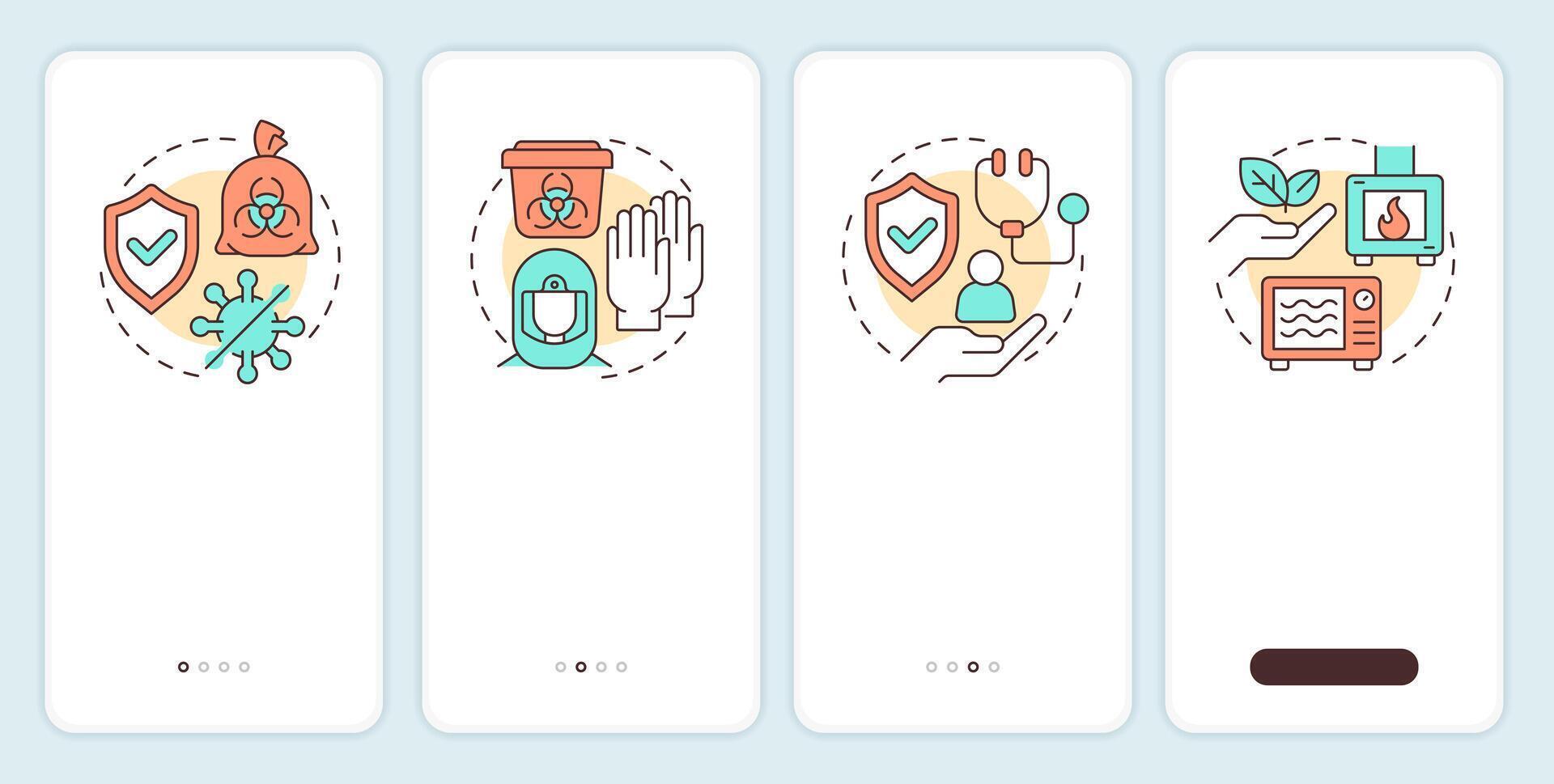 Biowaste management benefits onboarding mobile app screen. Walkthrough 4 steps editable graphic instructions with linear concepts. UI, UX, GUI Pro Vector