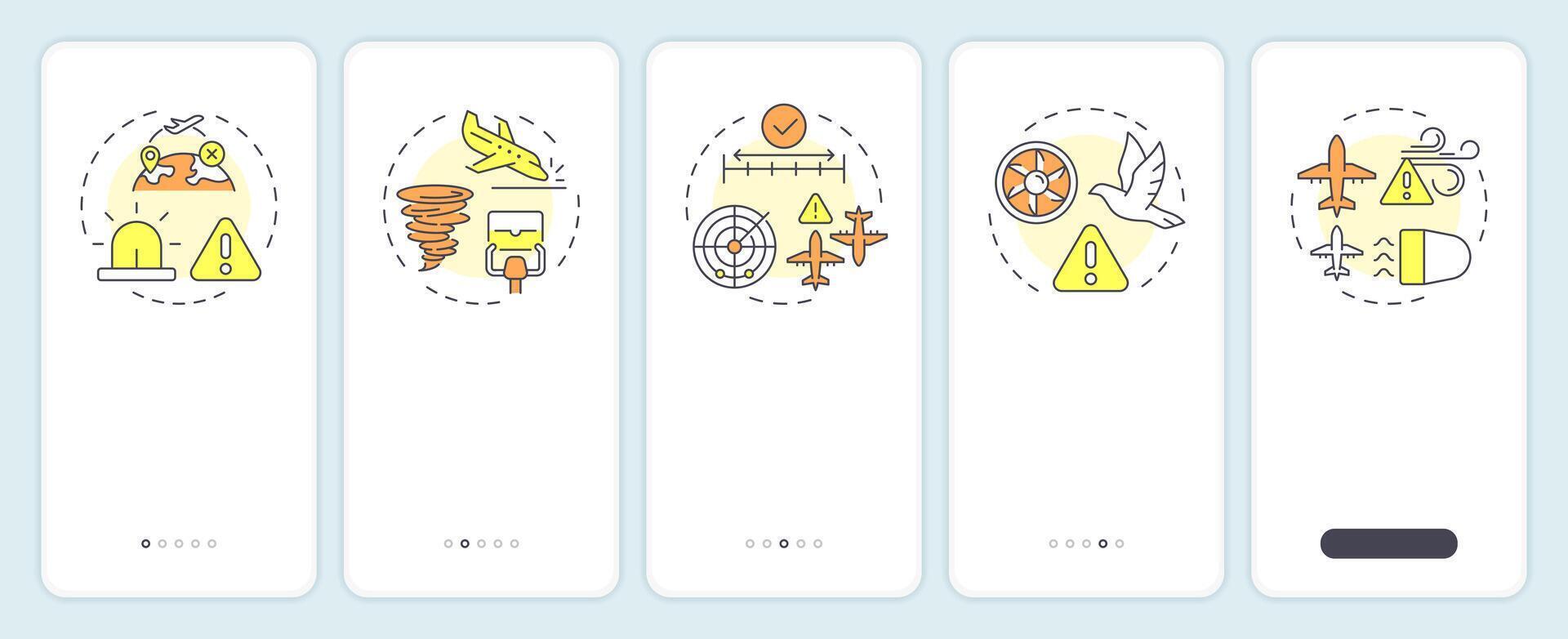 ATM operational issues onboarding mobile app screen. Danger, risk. Walkthrough 5 steps editable graphic instructions with linear concepts. UI, UX, GUI Pro Vector