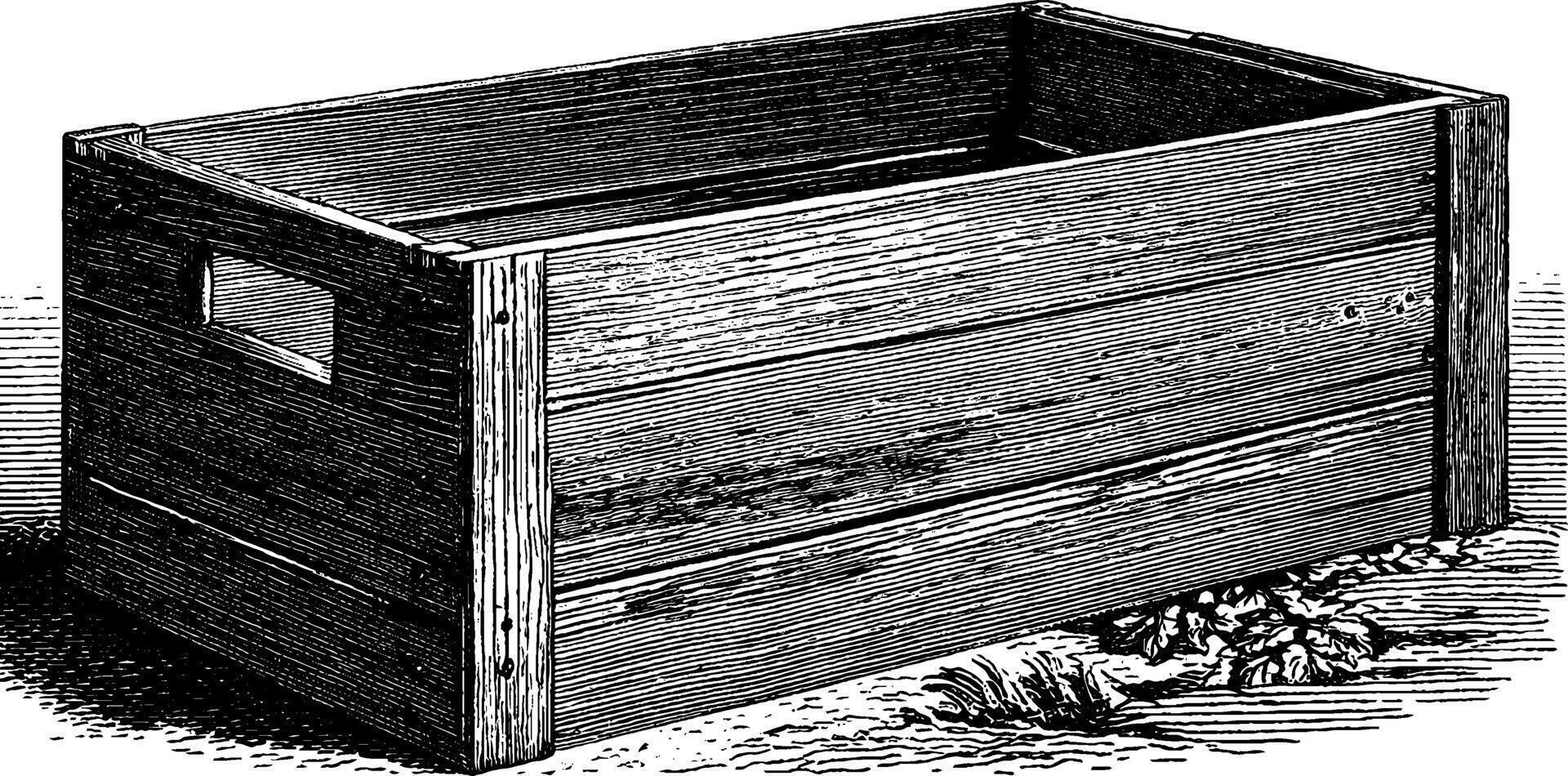Rustic wooden box with simple design and open top for storage. Pro Vector