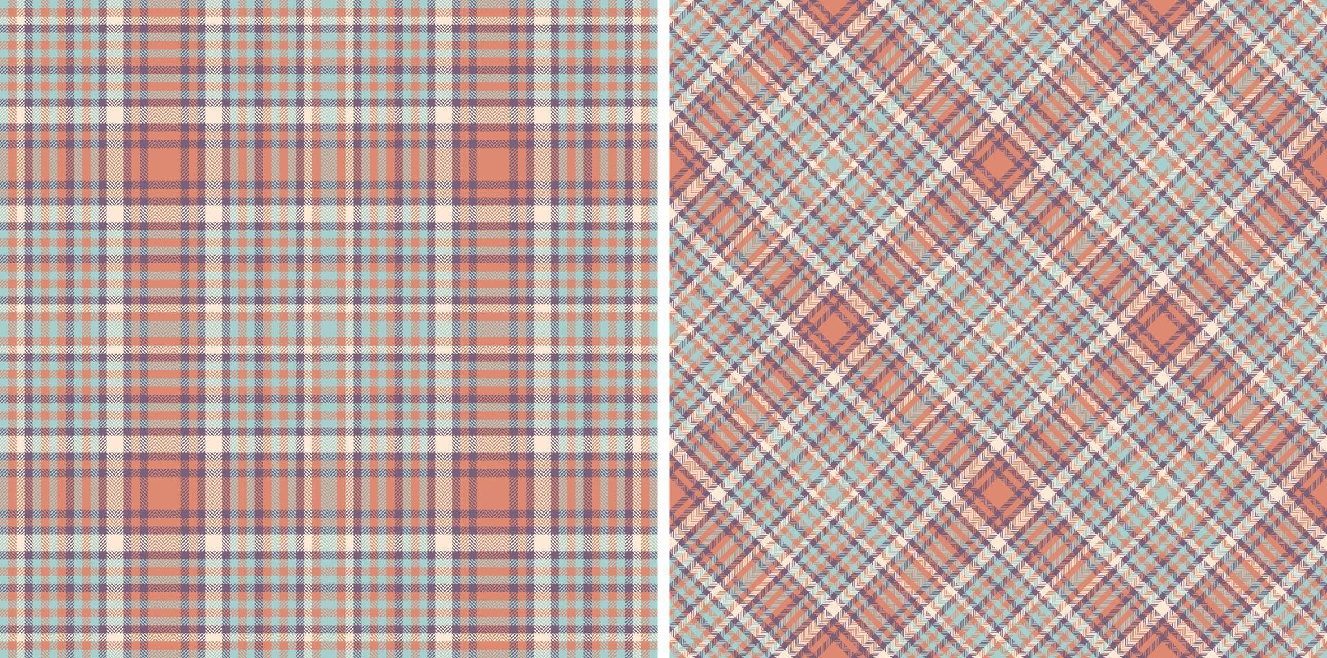 Two stylish pastel plaid patterns in soft peach, grey, and white. Perfect for textile design, scrapbooking, and website backgrounds. Pro Vector