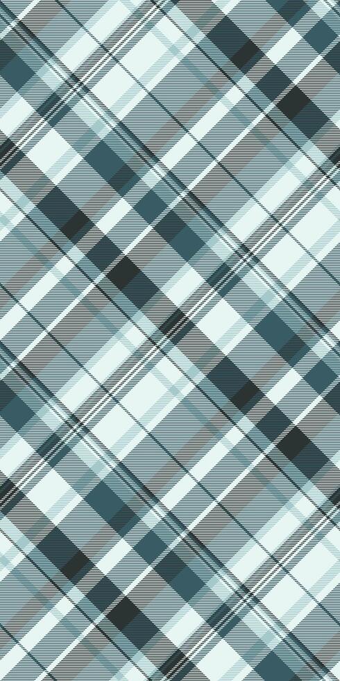Elegant diagonal plaid pattern in cool teal, gray, and white. Perfect for textile design, website backgrounds, or fashion projects. Subtle texture adds visual interest. Pro Vector