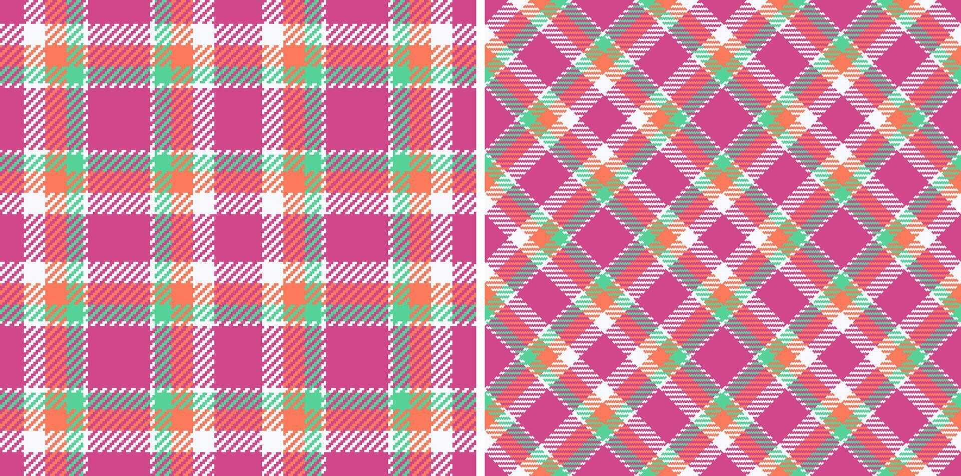 Vibrant pink plaid patterns, perfect for fashion, textile, or web design. Two distinct styles offer versatility a classic check and a dynamic diagonal weave. Pro Vector