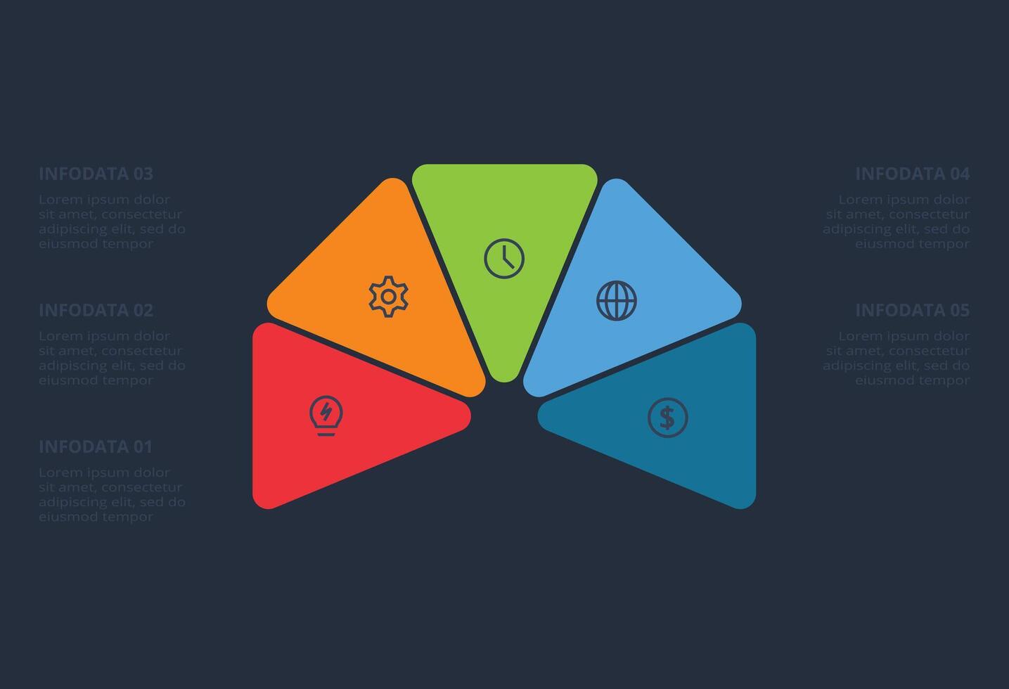 Dark infographic elements with 5 options, template for web on a black background. Pro Vector