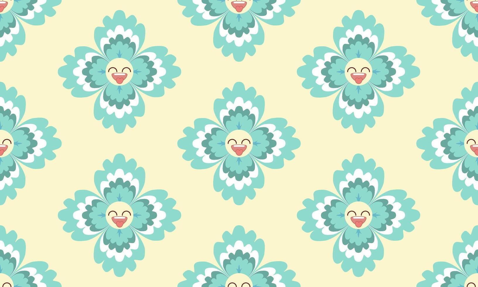 a pattern composed of green flower with face smile on yellow pastel background , design for fabric or various pattern printing works. Pro Vector