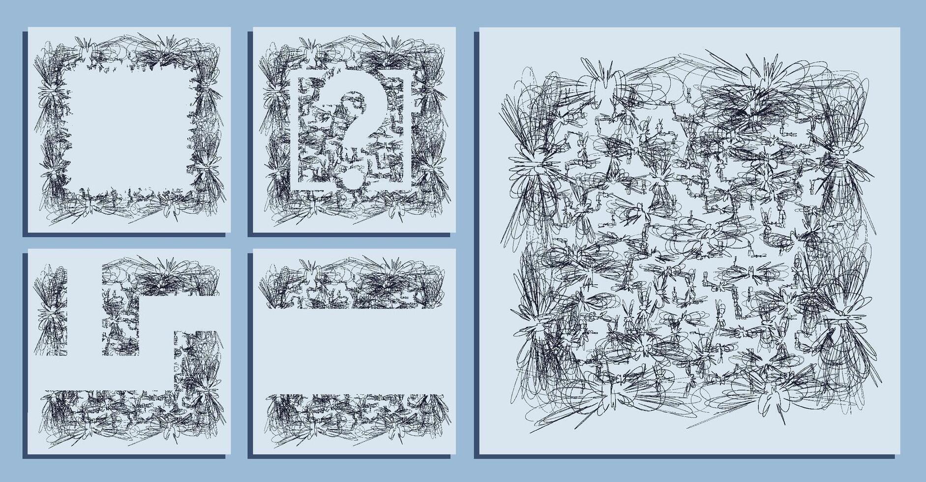 abstract square backgrounds of small hand drawn chaotic loop lines. Random children doodles of scribbles. Isolated image Pro Vector