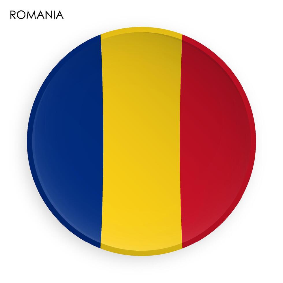 ROMANIA flag icon in modern neomorphism style. Button for mobile application or web. image on white background Pro Vector