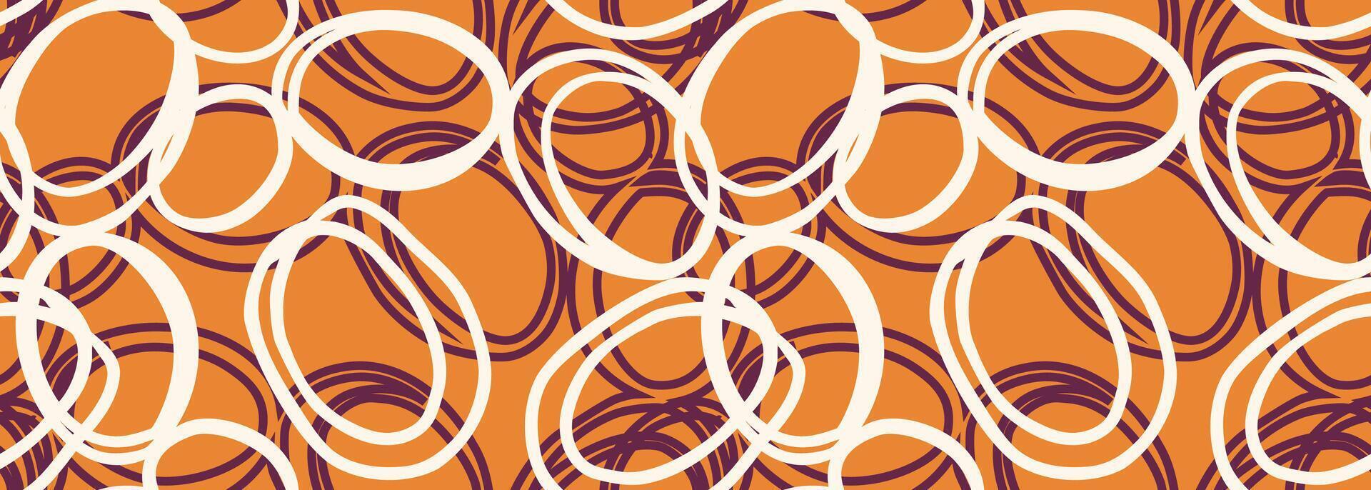 Dynamic abstract pattern featuring overlapping hand drawn circle shapes in deep burgundy and white on an orange background. Bold, modern, and artistic design, ideal for textiles, wallpapers vector