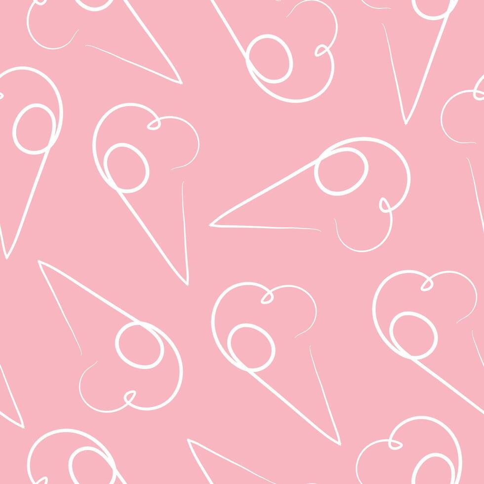 seamless pattern with a simple icon of a cone with ice cream scoops drawn with one contour in line art style on a pink background Pro Vector