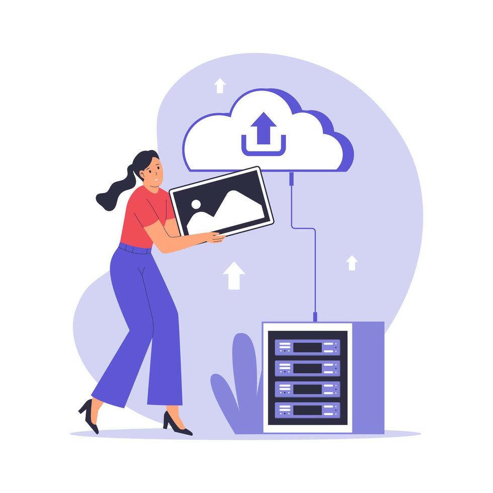 Flat Illustration of Cloud Upload Process for Data Storage and Backup Pro Vector