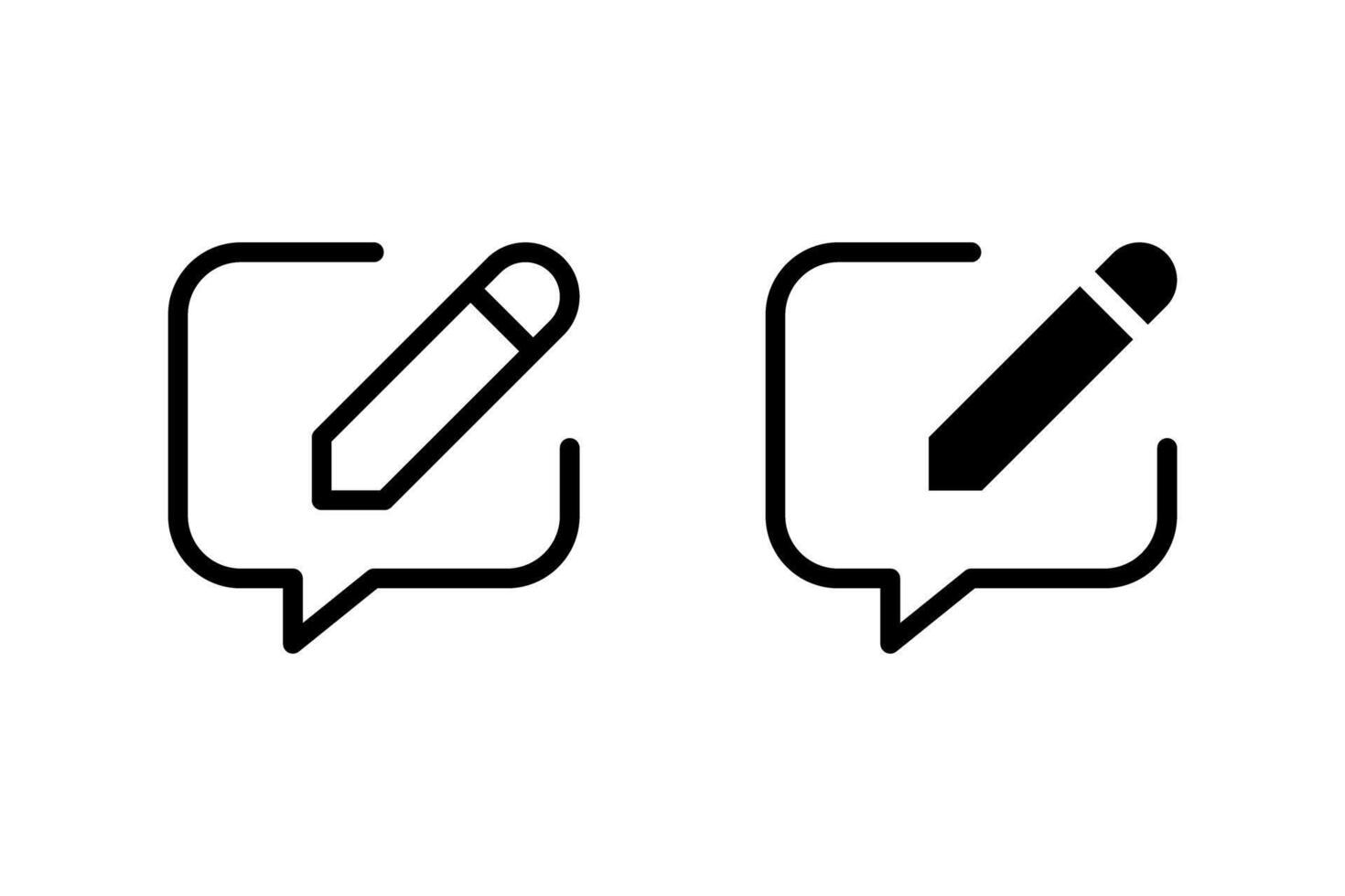 Edit icon set. Features pencil writing or drawing within a speech bubble shape. Perfect for representing editing, modification, feedback, and writing Pro Vector