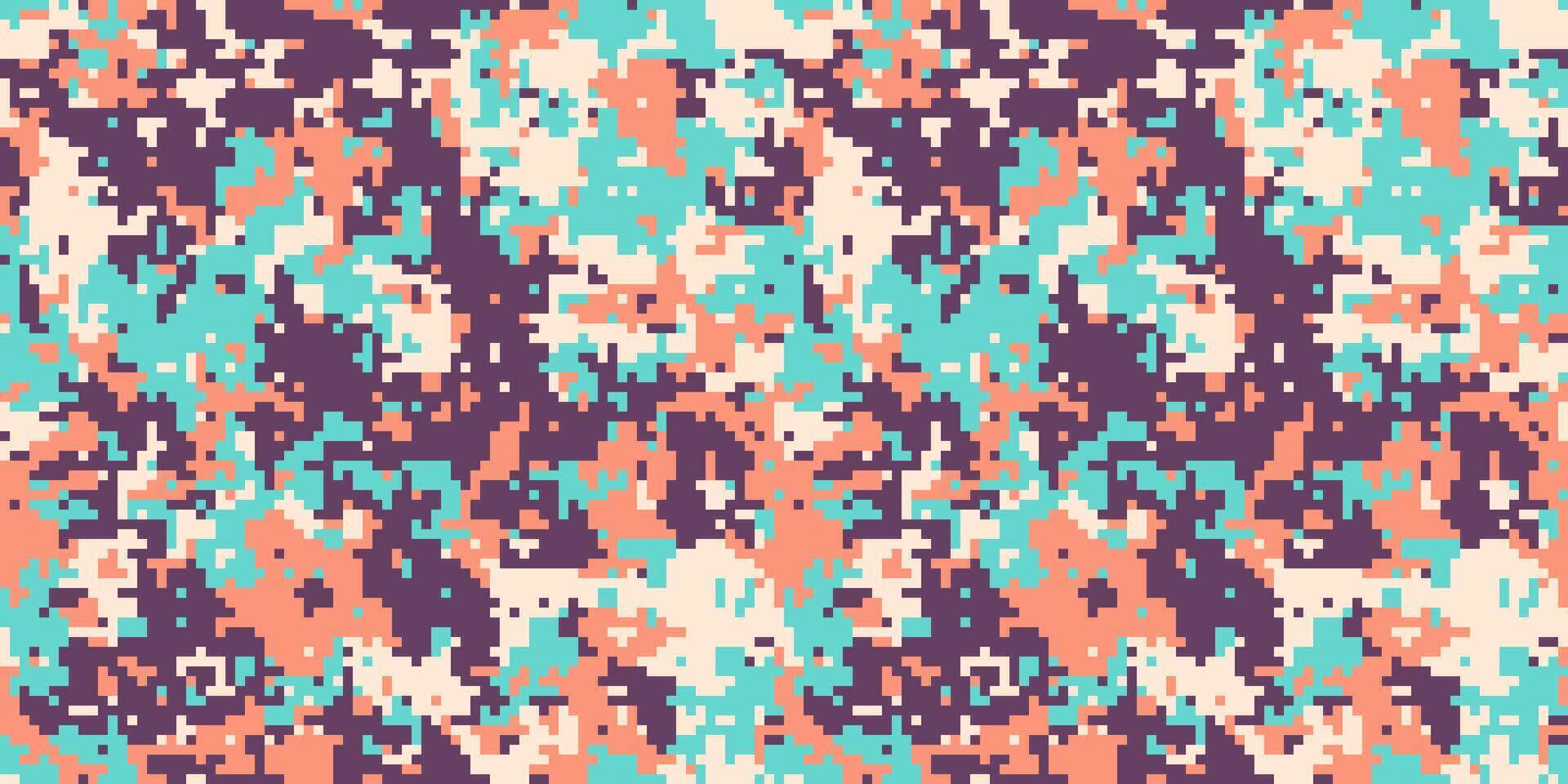 Abstract pixelated camouflage pattern in pastel coral, teal, and mauve. Perfect for fashion, textiles, and digital design projects seeking a unique, modern, and visually appealing texture. Pro Vector