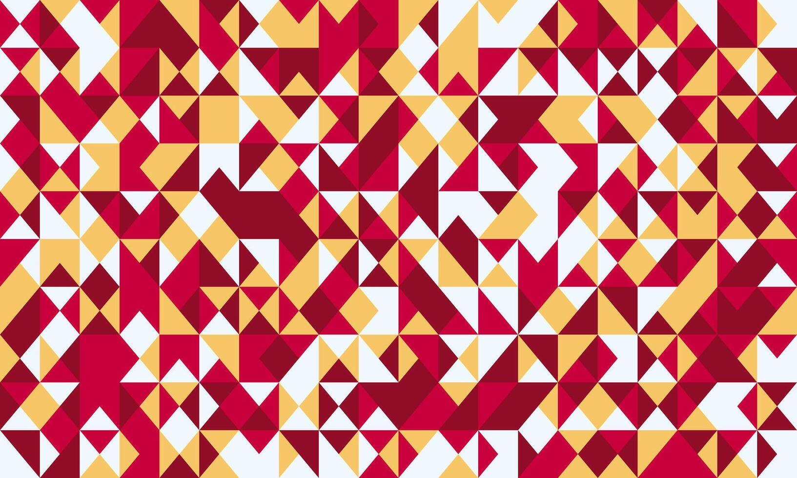 Abstract geometric pattern featuring red, gold, and white triangles. Perfect for backgrounds, website design, or modern branding. This vibrant, dynamic composition conveys energy and sophistication. Pro Vector