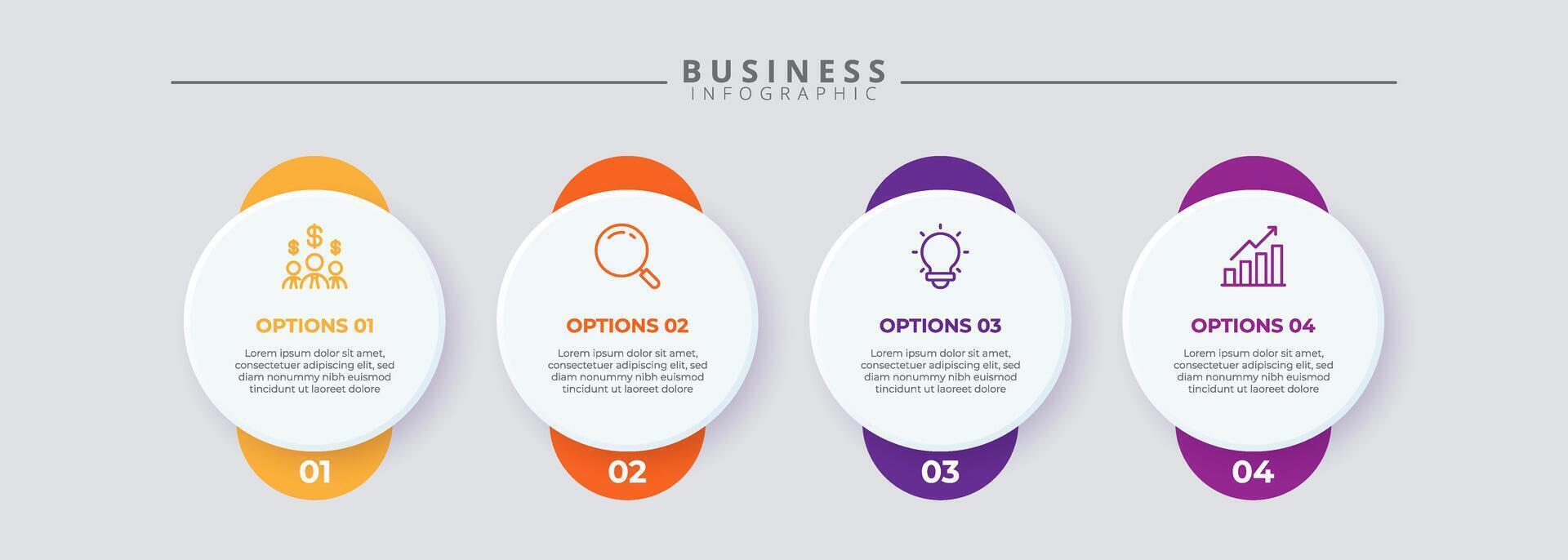 Infographic template featuring 4 steps with icons, designed for business concepts. Ideal for presentations, banners, workflow layouts, process diagrams, flowcharts Pro Vector