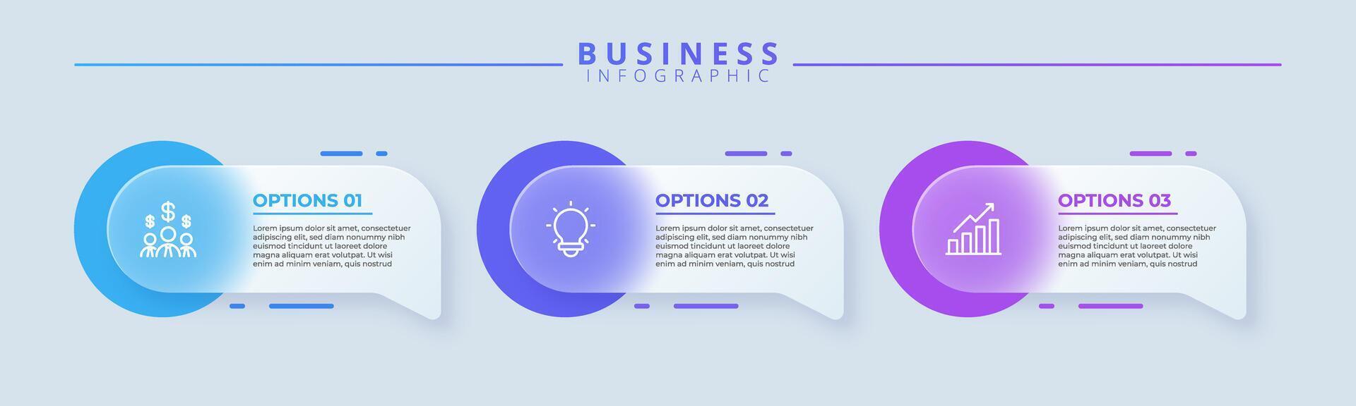 Design template for infographic labels with icons and 3 options or steps. Suitable for process diagrams, presentations, workflow layouts, banners, flow charts, and infographic Pro Vector