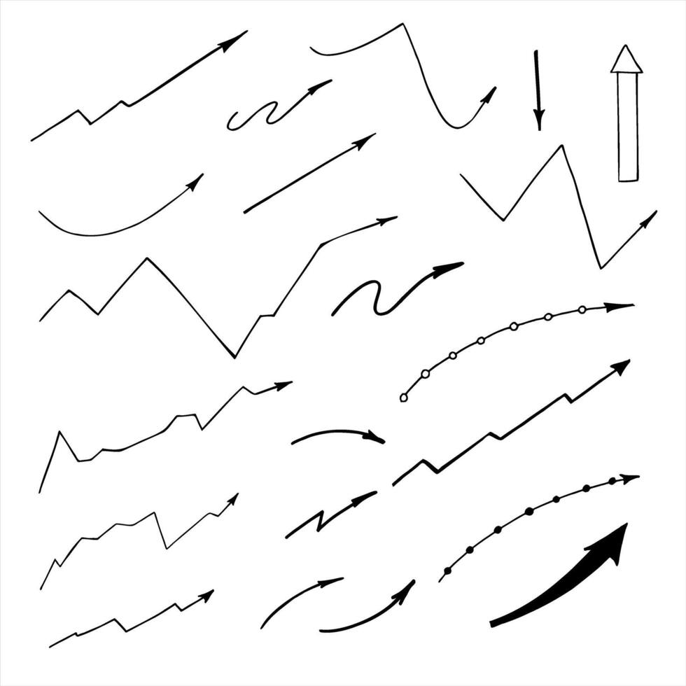arrows symbol in different shapes and variation graphic outline sketch illustration. Simple line art of curve, for business projects and education Pro Vector