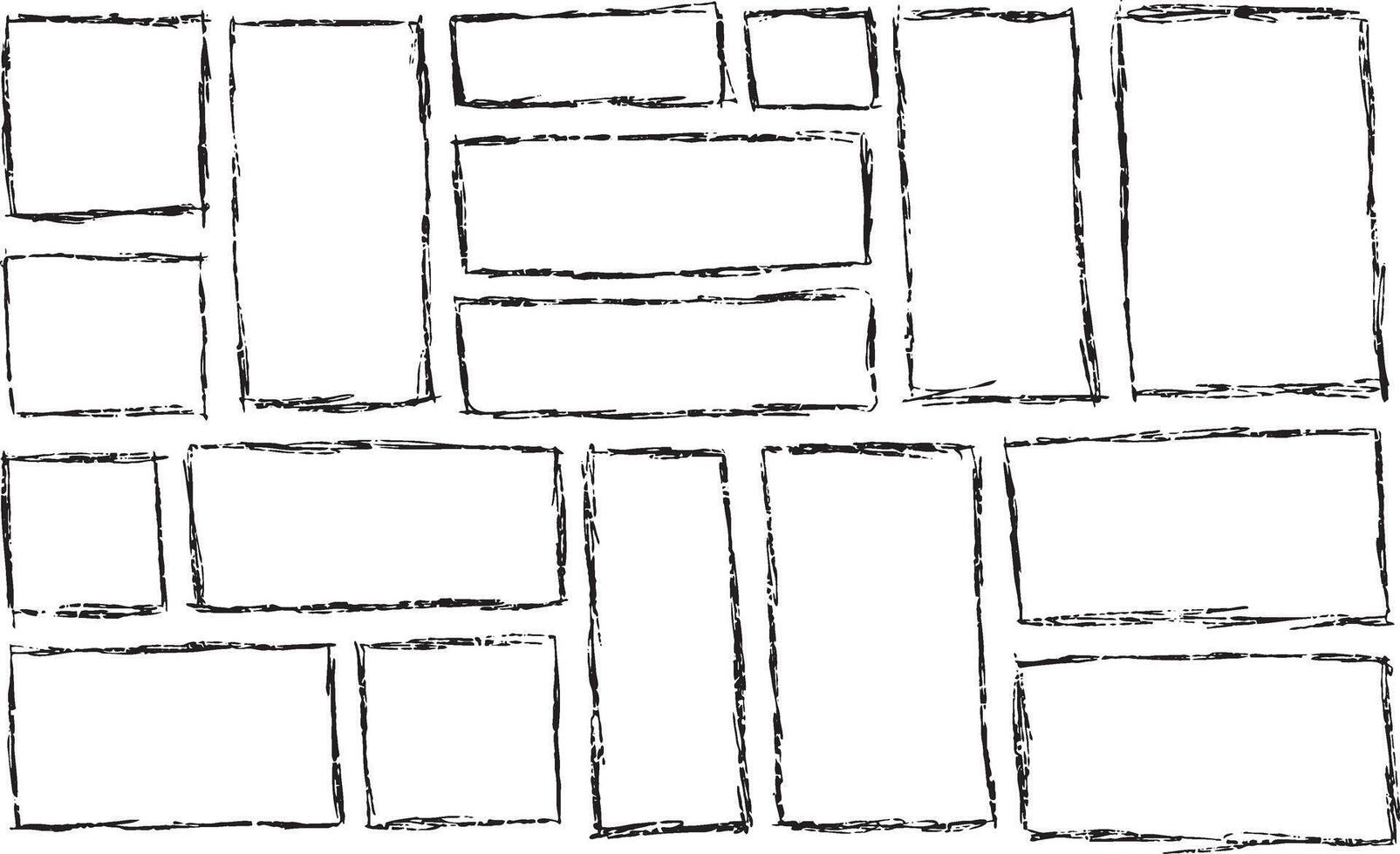 Border frame. Black dirty scribble square collection. Simple scratch brush empty doodle. Freehand grungy rectangle. Outline sketch line Pro Vector