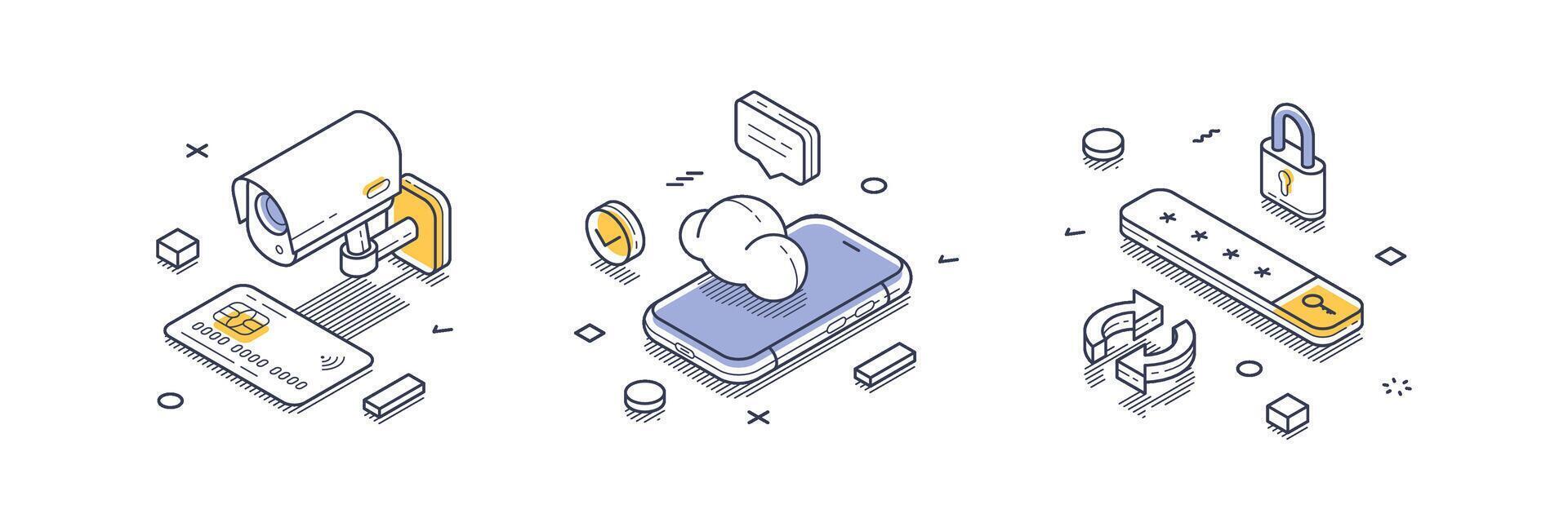 Internet security concepts featuring modern isometric line icons in format Pro Vector