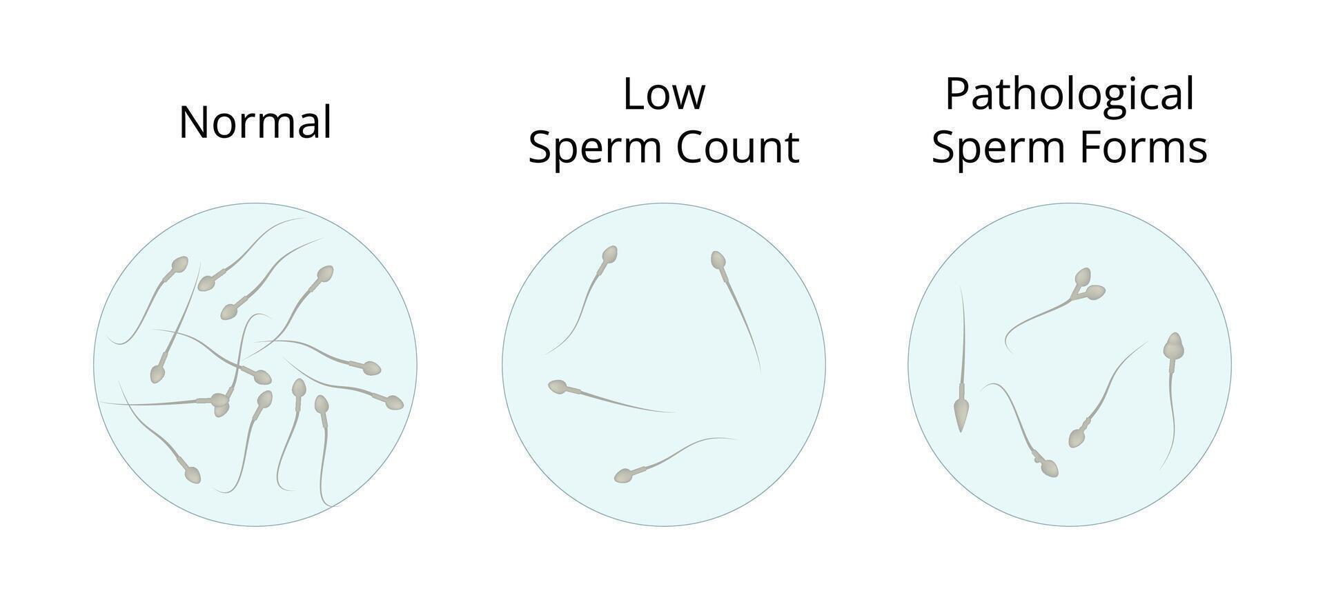 Normal, low and pathological sperm count showing different sperm forms Pro Vector