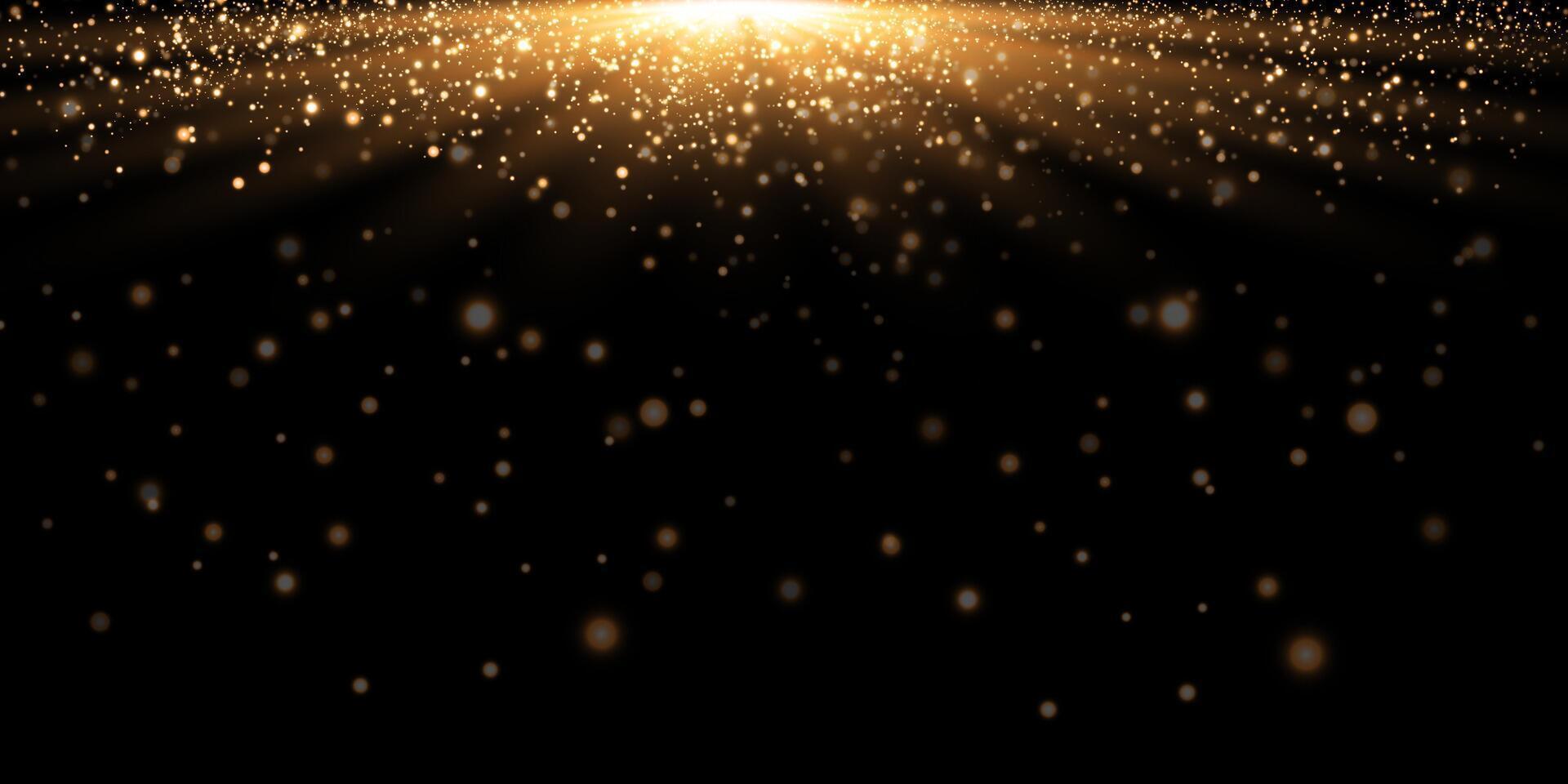 Golden Particles Sparkle Gently on a Rich Black Background, Creating a Stunning and Mesmerizing Visual Experience Pro Vector