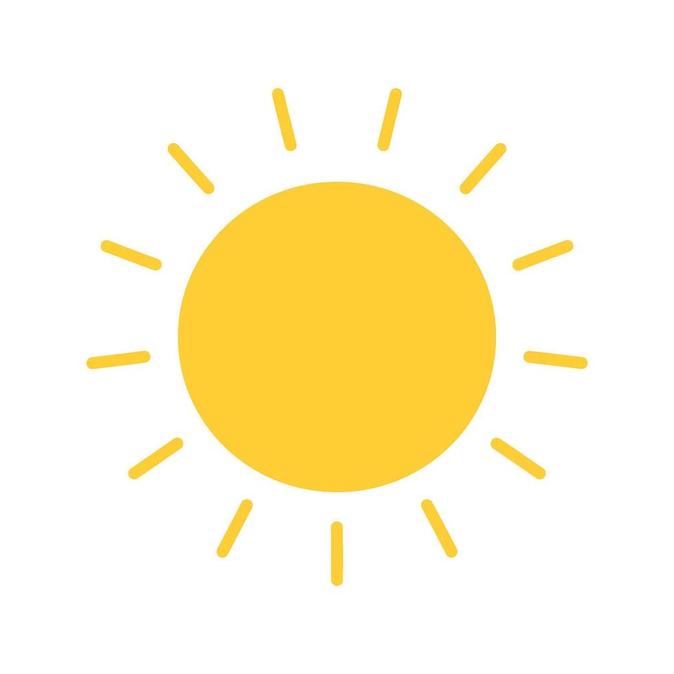 A yellow sun with rays of light shining on it. The sun is the center of the image and the rays of light are coming from it. Concept of warmth and brightness, as the sun is a symbol of light Pro Vector